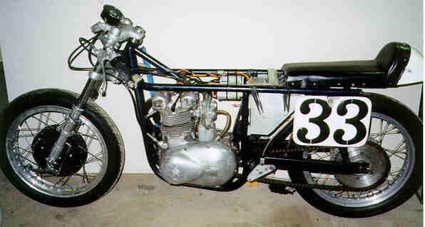 This is a Triumph 500 that I built for a friend 55 years ago. He died and his wife is letting me use it. Since she won't sell it, I guess that makes her a sponsor. |