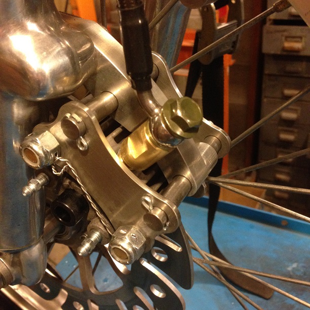 The front caliper is an Airheart that I made float because the disc is mounted solid. It works well as the bike is very light.