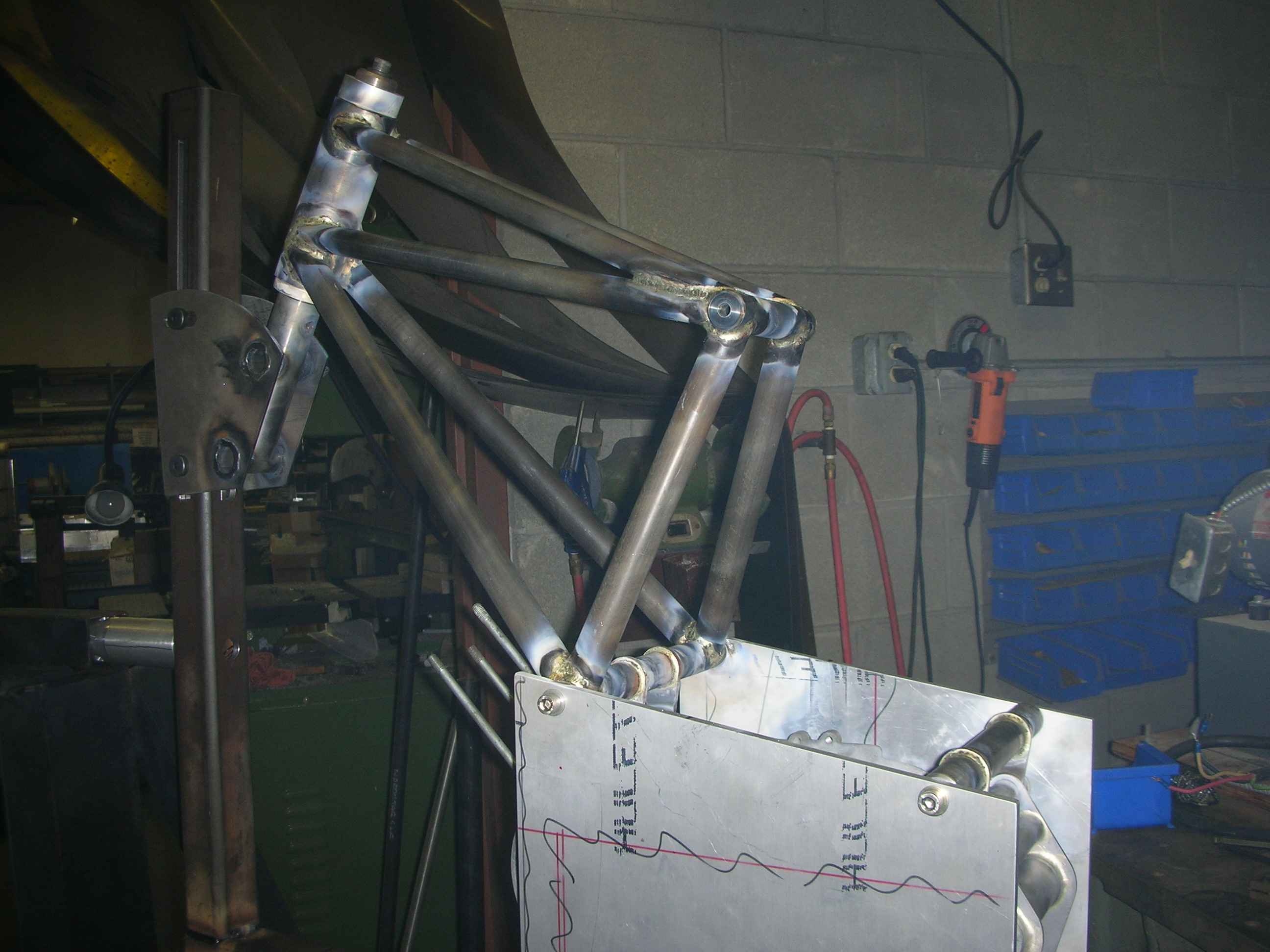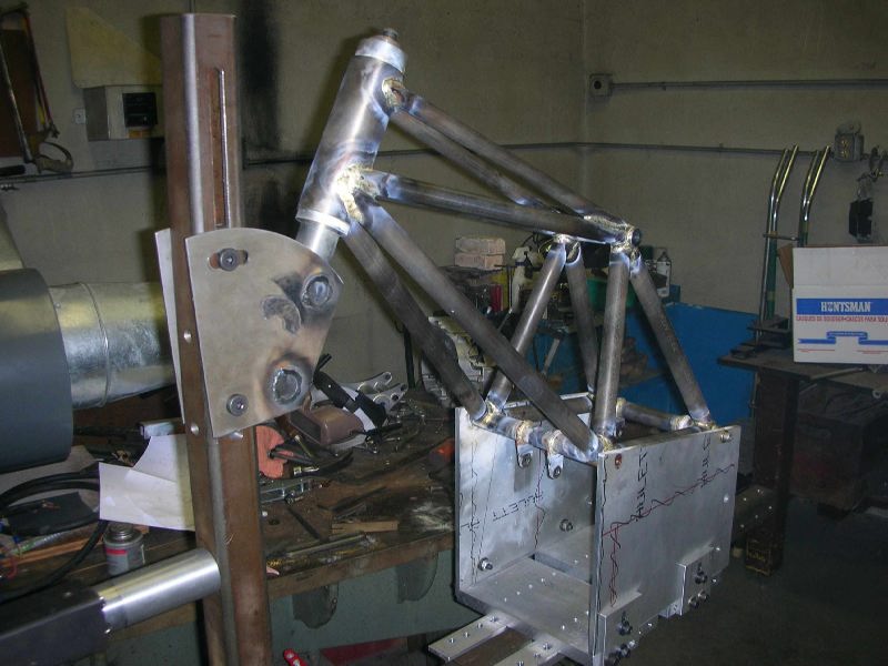 Pictures as I was building it. I used 1",3/4" and 5/8" tubing brazed with Eutectic 16 rod. I like the look of large tubes but could have made it with all 3/4" and 5/8" and it would have been strong enough. | |||